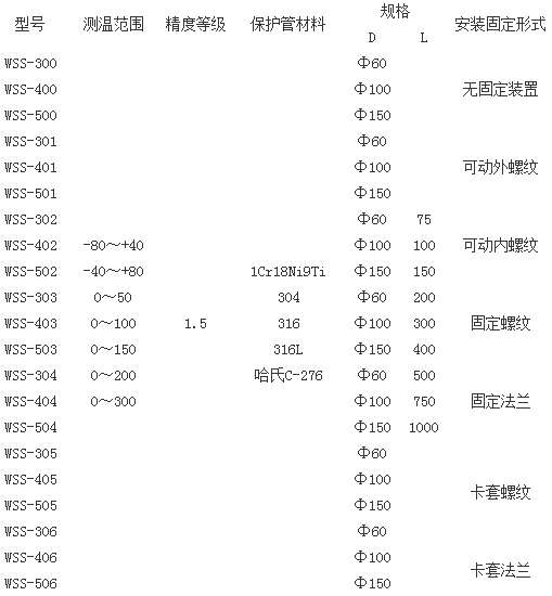 軸向型雙金屬溫度計產(chǎn)品選型表產(chǎn)品選型表如下: