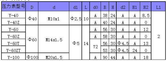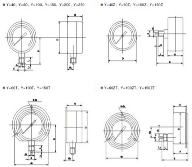 以下是壓力表的常見壓力表基本尺寸規格和螺紋安裝形式: