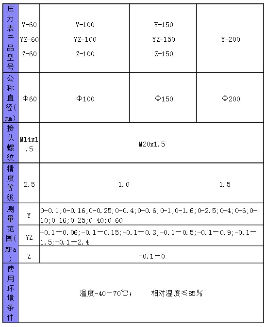 三、不銹鋼壓力表y-100 壓力表基本技術參數:(如下表格)