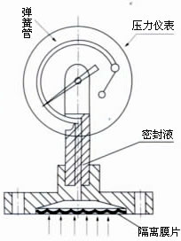 隔膜在被測介質(zhì)壓力作用下產(chǎn)生變形,密封液被壓,形成一個相當(dāng)于P的壓力,傳導(dǎo)至壓力儀表,顯示被測介質(zhì)壓力值。